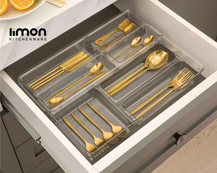 جا قاشقی لیمون مدل دو طبقه از اکریلیک شفاف و باکیفیت ساخته شده و ابزاری کاربردی برای نظم دادن به قاشق، چنگال، کارد و سایر ابزارهای آشپزی است. طراحی دو طبقه امکان تفکیک ابزارها بر اساس نوع یا اندازه را فراهم کرده و فضای کابینت یا روی میز را بهینه میکند.